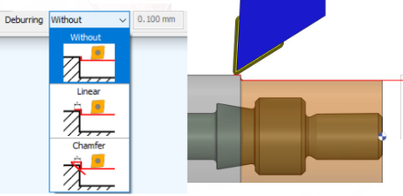 If you simulate this editing in Versione GO2cam < 6.08.202 on the Sub Spindle, the wrong direction of rotation seems to be simulated, so that the visual result shows the wrong slope slope. |