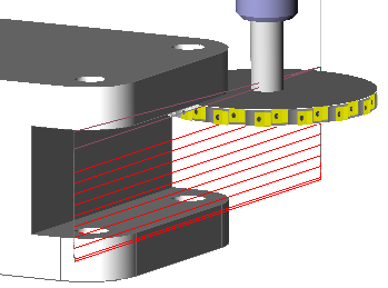 Il caso è simile al percorso 1 del centro di scanalatura. Tuttavia qui, la selezione può essere eseguita direttamente selezionando il fondo o il profilo del contorno. Questo permette di fare una scanalatura la cui larghezza è il lato dell'utensile Scegli "Profilo inserito: Chiocciola " per questa strategia. |