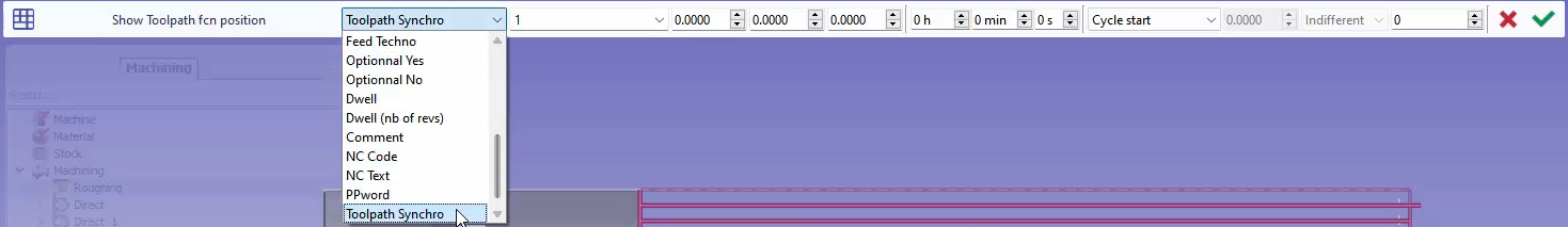ドロップダウンリストから ツールパス シンクロ を選択します。 |