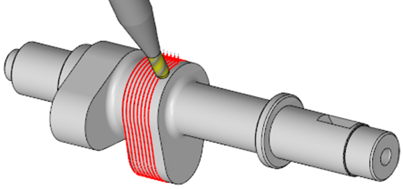 面取り戦略 - ヘリックスツールパス サイクル: 4軸面取り 定義 4軸サイクルの主な強みの1つは、連続したヘリックスツールパスを生成できることです。 ヘリックスツールパスを取得するには: スイープタイプを片方向に設定します 平行切削角度 = 90°または270°を定義します。