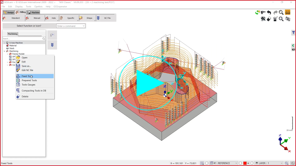 加工ツリーへの直接アクセスを使用して、固定工具と準備工具を定義し、それらの長さゲージを定義できます。機械ファイル内の工具の番号を変更することもできます。これにより、ユーザーは工具ライブラリで変更された番号を確認できます。