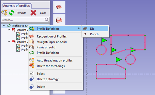Z断面によってプロファイルが作成されると、プロファイル定義によって、それが 金型またはパンチ 形状 |