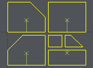 例1 :ドラフトに点がない場合、GO2camは輪郭を分析し、入力したパラメータに応じてねじ切り点を生成します。 画面下部のメッセージで、点の作成が確認されます。作成が不可能な場合もあります。その場合は、このメッセージボックスで通知されます。ここでは、4 mmのオフセットは、小さすぎる2つの形状では不可能です。オフセット値を変更するか、手動で点を生成する必要があります。 |