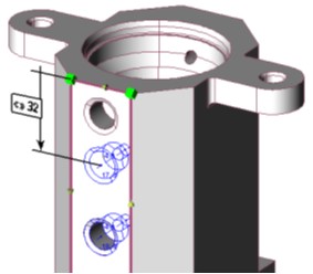 必要に応じて、公差モジュールを使用してパーツのトポロジを変更することもできます。 CAD図面から読み取った寸法と実際のジオメトリの値は異なる場合があります。公差により、ジオメトリを変更せずに実際の寸法を維持できます。これは、困難または不可能な場合があります。 たとえば、ソリッド認識コマンドで定義された穴を移動できます。面のエッジと穴の間に「公差」を定義し、寸法を変更するだけです。穴は移動し、新しい位置で機械加工されますが、ジオメトリ自体は変更されません。 |
