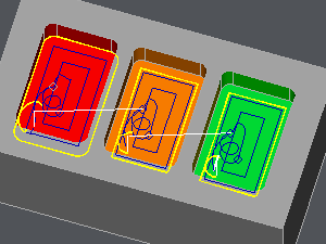 パーツ: ツールパスにはオフセットがなく、パーツ上で計算されます。 半径補正 が考慮されます( G41 リードインとリードアウト 半径 とリードインとリードアウト 距離 自動的に作成されます。 |