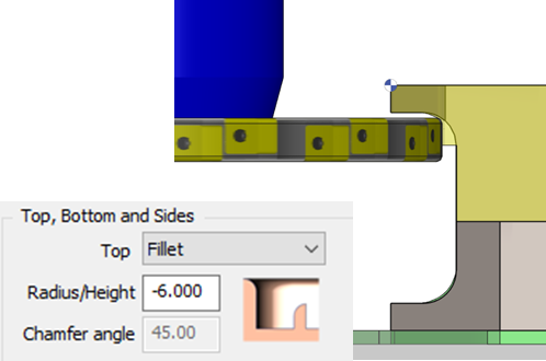 ソリッド上で作業する場合は、 ソリッドプロファイル :' ソリッド面の読み込み 'を はい に設定して、ソリッドモデルから直接テーパ、フィレット、面取りの値を取得します。この場合、他の値を入力する必要はありません。