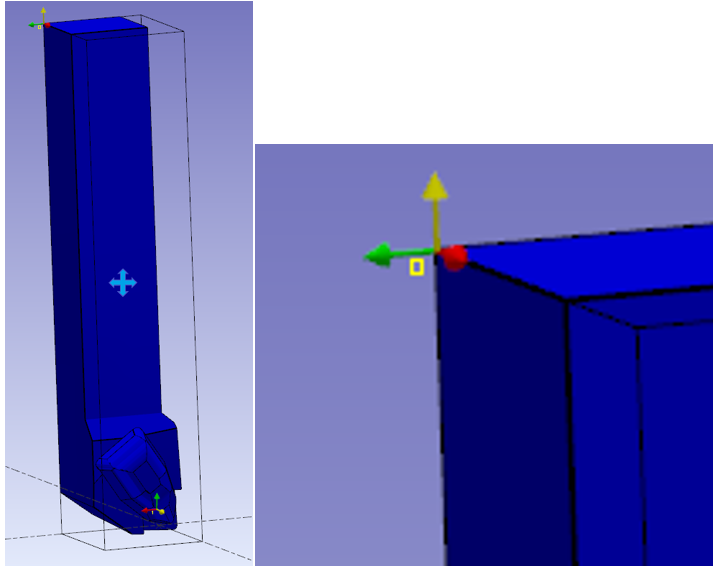 注:'ワイヤーフレームインポート'オプションを有効にすることで、ソリッドCADファイルから軸系をインポートすることもできます。 これは、Sandvik、IscarデータベースなどからSTEPファイルを取り込んでホルダを作成するのに非常に役立ちます。例えば、右側の画像の旋盤工具のように、インサートの位置の軸系を取り戻すことができます。 |