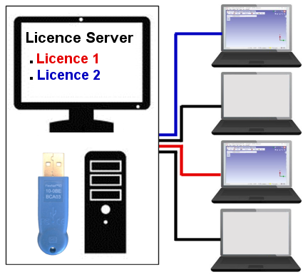 安装 GO2cam - 操作模式 我们提供两种 GO2cam 操作模式: 本地许可证 : GO2cam is installed on the user computer. 许可证与用户关联,并根据 USB 驱动器或计算机机器 ID 生成。 浮动许可证 (distant): one or several licences are managed by a server that distributes them to a certain amount of users where GO2cam is installed. 如您在此处所见,服务器管理 2 个许可证,4 个不同的用户可以使用。