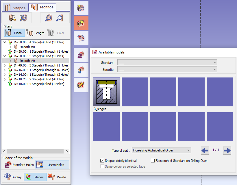 至於 操作清單 ,它們是由小直徑到大直徑排列。(D3>D2>D1) 我們可以點擊下一步,最後命名並保存模型,之後它將應用於Techno頁籤中選定的孔。 |