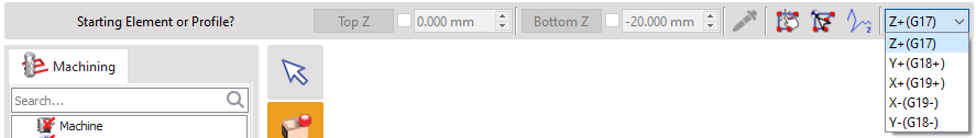 預設情況下,加工平面 G17 在NC程式中生成。 要切換平面,您可以: