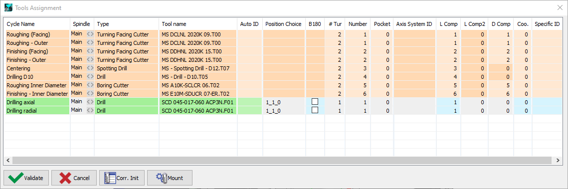 注意: 對於在多個操作中使用的刀具,修改第一次出現的設定將自動更新後續的實例。有一個自動裝配功能可用,但它不考慮 MTE 因素。 |