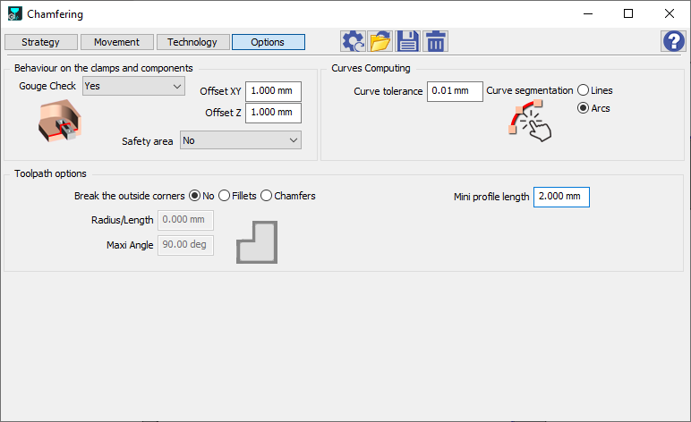 當選擇鋒利的邊緣來編程完整工件的去毛邊/倒角時,可以 避免小動作 ,通過給出所需的最小刀具路徑長度來勾勒鋒利的邊緣。 |
