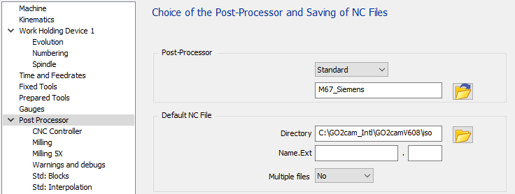 在此定義產生的 NC 檔案的名稱。必須在 MCF 組態中定義副檔名。