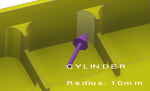 此模式並不是真正的測量,而是可以獲得 關於實體面的資訊。 將游標移到面上,它將顯示其類型(平面、圓柱體)、方向(垂直、水平、錐形……)以及有時的值(半徑、角度……)。 您可以在設計中使用此指令,也可以在選擇幾何圖形或工具時在加工選單中使用此指令。例如,這些資訊可以幫助您選擇正確的工具。